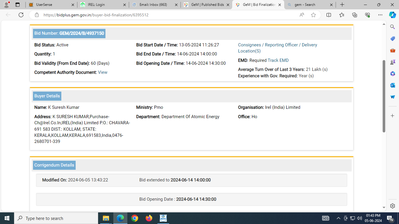| Tender Reference Number | GEM/2024/B/4937150 | ||||